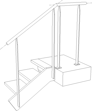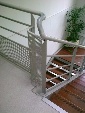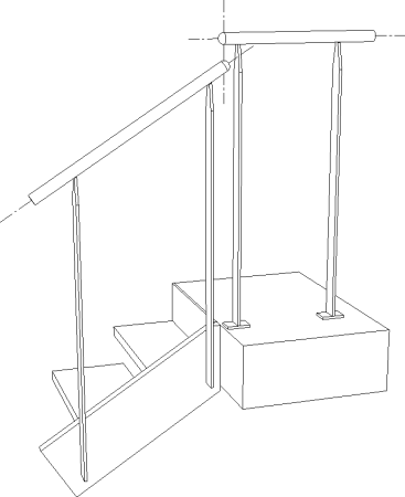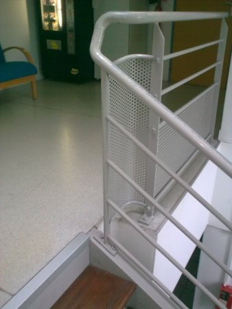 Escalier avec marche palière : détail du raccord de la rampe et du garde-corps