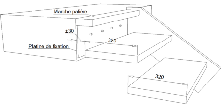 En additionnant l’épaisseur de la platine fixation, le recouvrement et le jeu laissé entre l’arrière de la marche et la platine fixation. Cela permet de minimiser l’encombrement de la marche palière et de garder le maximum de longueur pour l’escalier.