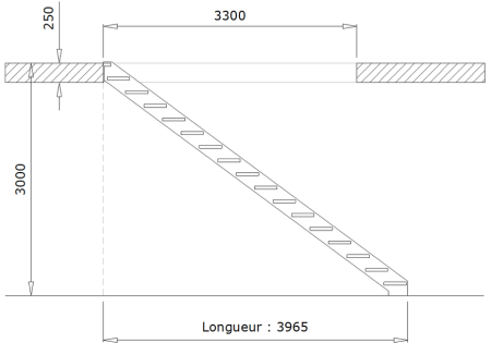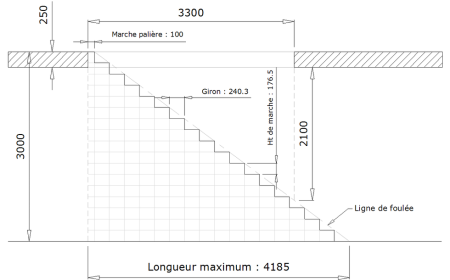 Ce tracé permet d’estimer l’encombrement de l’escalier. C’est une estimation, elle va seulement servir de base pour le calcul.
