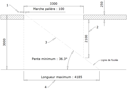 La ligne de foulée symbolise donc le déplacement le déplacement d’une personne sur l’escalier, sa position va entièrement déterminer le calcul de l’escalier. Pour déterminer sa position, deux situations sont possibles :