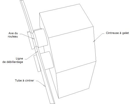 Le débillardage d’un tube rond se fait en même temps que l’opération de pré-cintrage à l’aide d’un tracé que l’on effectue sur le tube. Il faut forcer le tube à suivre ce tracé au cours du cintrage. La ligne doit rester dans l’axe des galets.