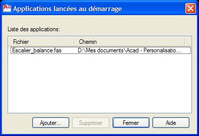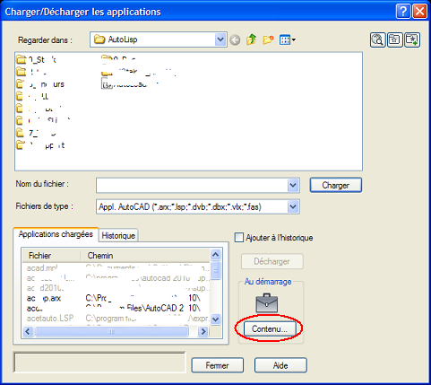 Si vous souhaitez le charger automatiquement au démarrage d’AutoCAD, allez dans le menu \"Outils->AutoLISP->Charger une application\" puis sur le bouton \"Contenu\".